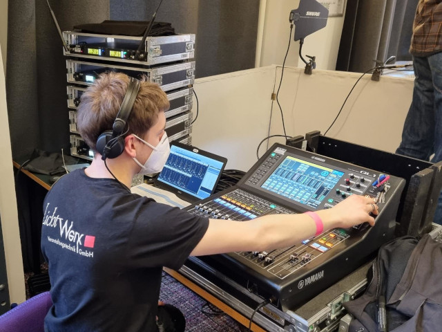 - Einen Einblick in alle Gewerke der Veranstaltungstechnik, die Schwerpunkte liegen auf Licht-, Ton-, Video- und Bühnentechnik